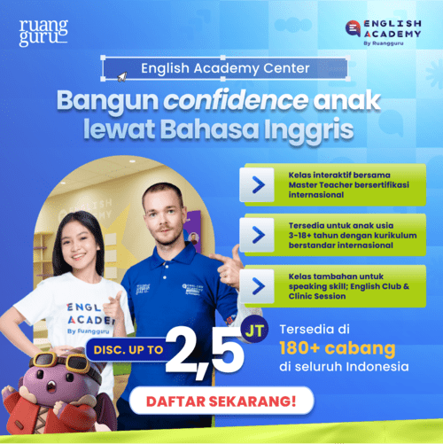 Yuk, belajar di English Academy dengan kurikulum berstandar internasional! Klik banner di bawah untuk konsultasi gratisnya.